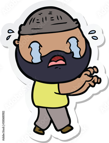 man, male, beard, bearded, crying, cute, cartoon, sticker, stick, on, icon, decal, label, drawing, illustration, retro, doodle, freehand, free, hand, drawn, quirky, art, artwork, funny, character, sad, unhappy