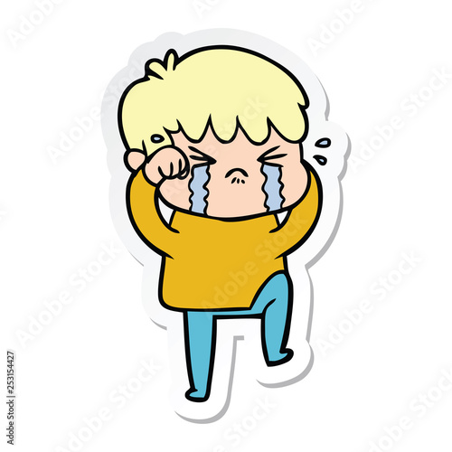 man, male, boy, crying, cartoon, sticker, stick, on, icon, decal, label, drawing, illustration, retro, doodle, freehand, free, hand, drawn, quirky, art, artwork, funny, character, people, upset