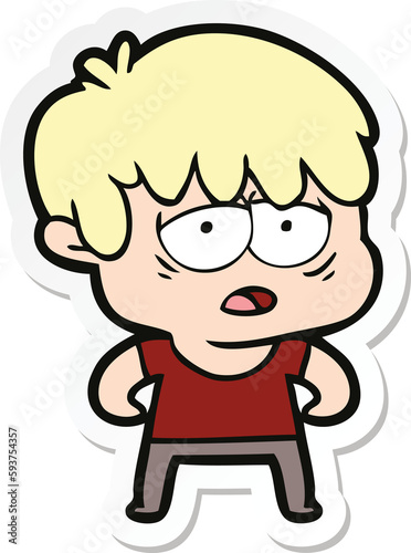 sticker of a cartoon exhausted boy