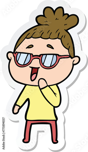 happy, female, woman, girl, wearing, spectacle, goggles, cartoon, sticker, stick, on, icon, decal, label, drawing, illustration, retro, doodle, freehand, free, hand, drawn, quirky, art, artwork, funny, character