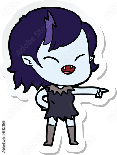 vampire, girl, happy, laughing, halloween, woman, female, cute, cartoon, sticker, stick, on, icon, decal, label, drawing, illustration, retro, doodle, freehand, free, hand, drawn, quirky, art, artwork, funny, character, pointing