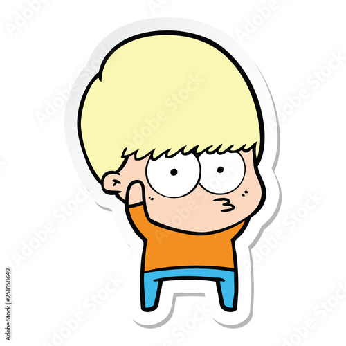 man, male, boy, nervous, curious, wondering, considering, uncertain, cute, cartoon, sticker, stick, on, icon, decal, label, drawing, illustration, retro, doodle, freehand, free, hand, drawn, quirky, art, artwork, funny, character