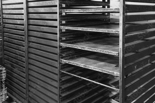 Stikkenwagen und Backbleche in einer Bäckerei