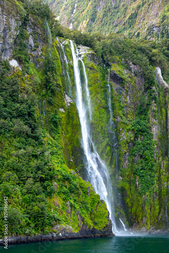 new zealand, waterfall, fall, blue, doubtful, fiord, green, holiday, island, isle, landscape, milford, mountain, national, nature, new, ocean, park, pattern, peak, relax, rock, scene, scenic, sea, secluded, sky, sound, sunny, tour tourism, holiday maker, travel, vacation, water, wild