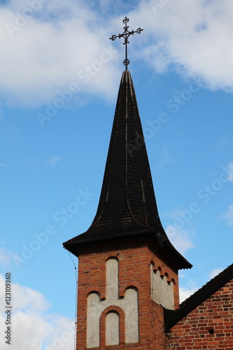 church, tower, cross, sky, blue, cloud, sweden, building, architecture