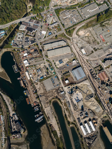 Stock aerial photo of Seymour River Industrial Zone North Vancouver, Canada