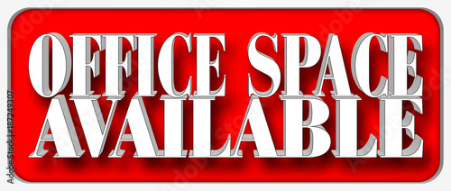 Stock Illustration - White Bold Text Office Space Available, 3D Illustration, Isolated Against the Red Background.