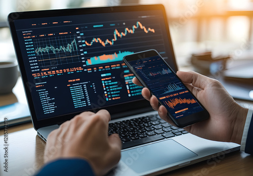 stock exchange, stock exchange, finance, investment, trading, business, businessman, chart, graph, laptop, smartphone, mobile phone, technology, screen, investor, trader, analysis, statistic, economic, financial, digital