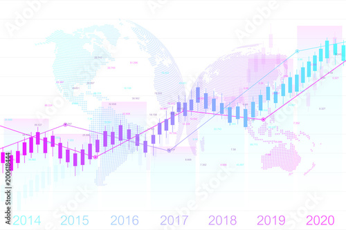 Stock market and exchange. Candle stick graph chart of stock market investment trading. Stock market data. Bullish point, Trend of graph. Vector illustration.