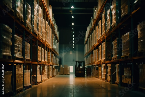 Stock Organization in Warehouses: One-section View of Stacked Boxes Arranged by Forklift - AI Generative