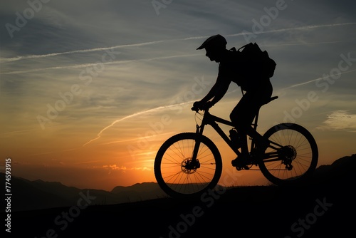 StockImage Silhouette of a mountain biker against sunset sky photo