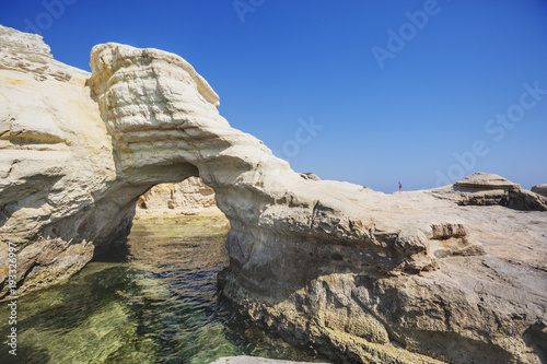 Stone arch near Paphos. Cyprus landscape. White cliffs