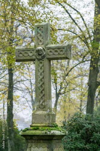 cross, cemetery, grave, gravestone, religion, christianity, faith, remembrance, memorial, death, grief, spirituality, afterlife, history, stone, weathered, sculpture, historical building, autumn, tree, nature, serene, peaceful, solitude, contemplation, loss, sorrowful, hope, symbol, celtic, jesus christ, god