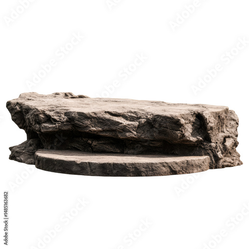 stone, rock, platform, display, isolated, background, texture, shelf, grey, brown, dark, rough, rugged, natural, solid, strong, stable, earthy, ancient, geology, nature, environment, design, element, presentation, product, showcase, realistic, abstract, minimal, simple, layered
