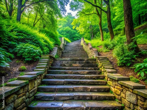 Stone Steps in West Virginia Park, Lush Green Foliage, Nature Walk
