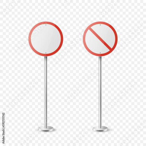 Stop. Vector White and Red Round Glossy Prohibition Stop Sign Icon Set - Warning, Danger Sign Frame Icon Closeup Isolated on White Background. Dangerous Plate Design Template of Road Sign, Front View