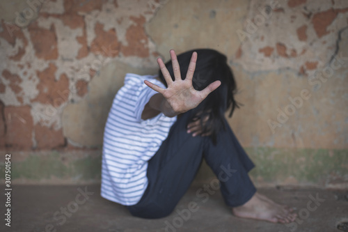 Stop violence and abused children.traumatized children concept.