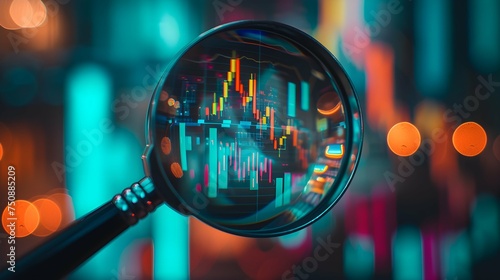 Strategic Market Analysis Magnifying Detail on Data Charts Financial analysis concept