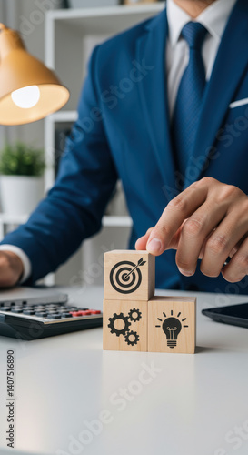 Strategy Blocks: Target, Gears, Idea - Business Success, Goals, Planning, Solutions & Innovation in Action!