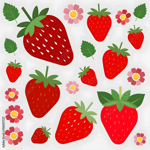 Strawberry Harvest: Ripe Berries, Leaves & Blossom Vector Set