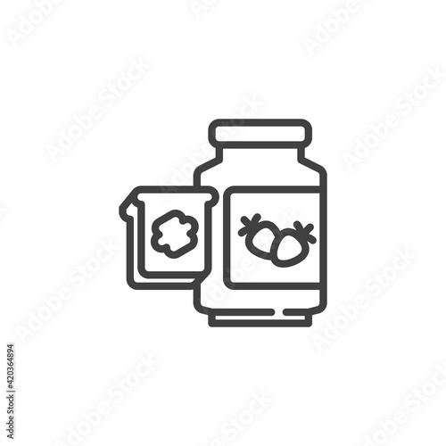 strawberry, jam, toast, icon, line, outline, linear, vector, logotype, pictogram, symbol, signs, clip art, design, illustration, thin, editable, graphic, simple, pixel, honed, food, breakfast, bread, jelly, fruit, morning, sweet, jar
