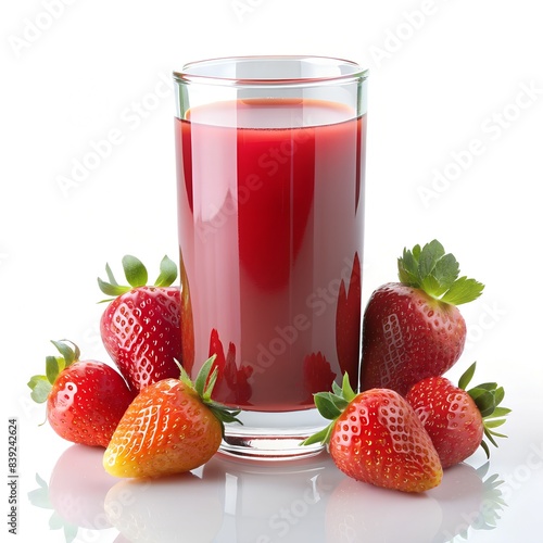 strawberry juice on glass isolated white background