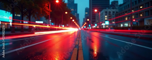 Streaks of light paint city street, traffic cones & pylons stand still , traffic cone, urban, dark city
