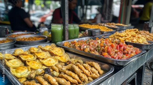 Street Food Market with Diverse Dishes