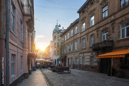 lviv, ukraine, architecture, travel, ukrainian, sunset, sunrise, unesco, town, city, city landscape, urban, tour tourism, landmark, attraction, building, view, famous, destination, europa, east europe, pedestrian, beautiful, downtown, street, eatery, bar, cafes, tower, day, sky, clear, blue, sunny, colourful, facades, exterior, sun