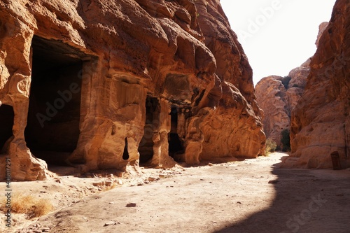 jordan, mountain, blue, sunny, wadi, sky blue, middle, tomb, canyon, east, petra, cave, stone, archaeologic, travel, sand, nature, historic, landscape, earth, sacred, hole, ancient, heritage, scenery, ruin, history, architecture, sandstone, site, little, rock, unesco, cliff, treasury, discovery, excavation, archaeology, roman, treasure, city, desert, mystery, bedouin, monastery, royals, red, temple, adventure
