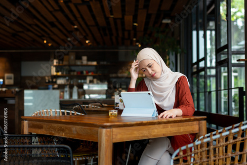 indonesian, malaysian, southeast, asian, female, tablet, cafes, stressed, concentration, thinking, work, coffee, technology, study, business, thoughtful, indoor, lifestyle, digital, professional, task, workspace, meditative, serious, freelancer, entrepreneur, sharpened, schedule, project, headscarf, relaxing, solitude, occupation, contemplate, routine, informal, side job, creative, challenge, goal, idea