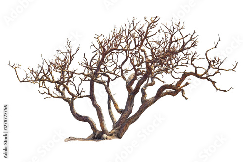 Striking Gnarled Tree with Twisted Branches Against a Transparent Background