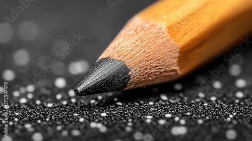 Striking macro photograph of sharpened wooden pencil tip above a textured surface with glittering dust emphasizing precision craftsmanship and the spark of creative potential in close up detail