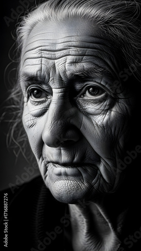 Striking monochrome portrait captures the essence of aging showcasing intricate details of skin and wisdom.