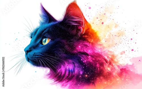 cat, silhouette, double, exposure, blending, art, colourful, vibrant, cosmic, fur, background, artistic, modern, creative, eye, profile, graphic, high-coloured, fantasy, design, illustration, portrait, visual, unique, light, texture, effect, imaginative, digital, abstract, nature, animal, zoom, expression, feature, emotion, depth, striking, soft, line, hue, brush, style, galaxy, exploration, perception