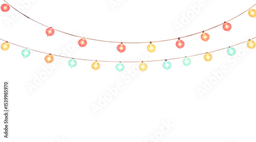 String lights in various colors against a white background for celebratory events and festive occasions PNG file isolated on transparent background cut out, clipping path, social media.