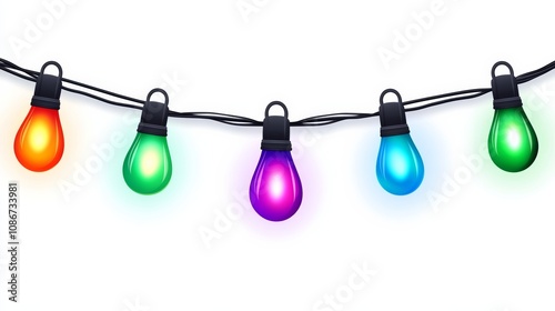 String of colorful lights with a white background. The lights are of different colors and are arranged in a line