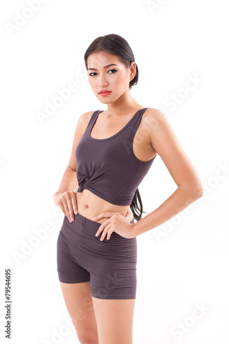 healthy, strong, woman, female, fitness, happy, fit, pose, lifestyle, sport, girl, activewear, strength, wear, young, beautiful, training, exercise, 1, person, people, adult, physical exercise, gym, active, body, health, studio, summer, athlete, runner, confident, activity, beauty, sporty, portrait, vitality, relaxation, slim, asian, leisure, background, happiness, white, isolated, energy, short, grey, arm