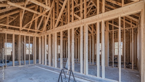 Structural framing of a newly built residence