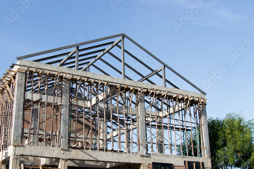 Structure of house wait for complete builidng with blue sky background