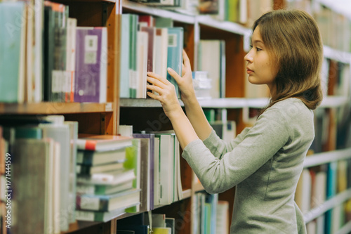 Student browsing academic literature in quiet university library, representing research, writing inspiration, and intellectual exploration.