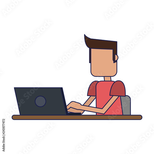 student, man, studying, computer, desk, cartoon, technology, cyberspace, young, education, woman, learning, university, vector, illustration, people, happy, casual attire, school, college, person, modern, sitting, wireless, classroom, smile, lifestyle, using, indoor, teenage, online, communication, caucasian, working, work, smiling, group, library, class, study, adult, connection, looking, business, professional, job