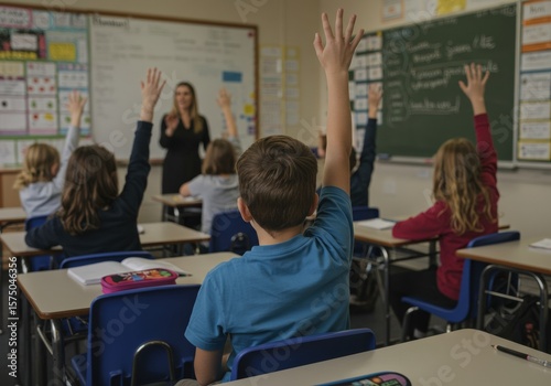 back to school, classroom, student, teacher, education, learning, school, children, hands up, teaching, lesson, academy, cognition, elementary school, children, pupil, board, desk, front view, studying, class, boy, girl, student, participation, interaction, elementary school, lesson, blackboard, attendance, young, indoor