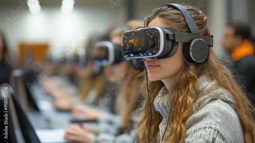 Students using virtual reality glasses in learning environment, Education and Technology concept Generative AI