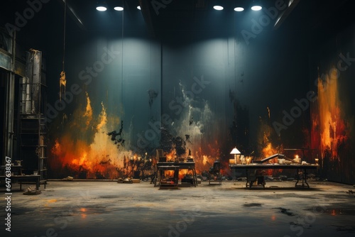 Studio designed for creative art photography featuring abstract backdrops and experimental lighting, Generative AI.