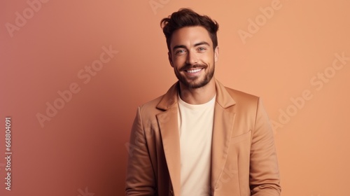 studio photo, a man in stylish fashionable clothes and with a perfect smile