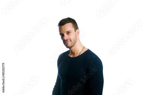 portrait, young, casual attire, man, background, white, photogenic, happy, fashion, male, model, trendy, clothes, people, isolated, person, studio, adult, caucasian, attractive, 1, lifestyle, guy, against, modern, style, smile, human, looking, stylish, confident, beauty, standing, happiness, cheerful, success