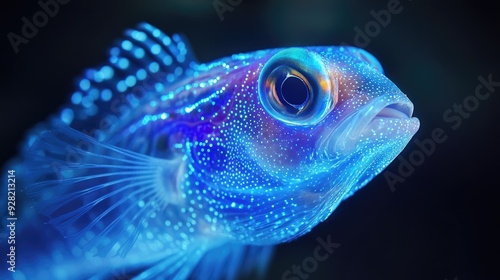 Stunning 3D close-up of a bioluminescent fish with a brilliant light show in its oceanic realm