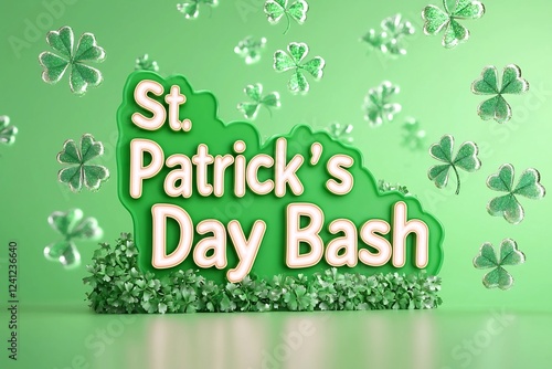 Stunning 3D Glowing Text St Patrick s Day Bash Poster with Sparkling Clovers for Festive Irish Cultural