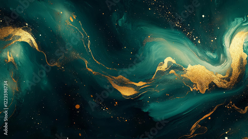 abstract, art, green, gold, swirling, texture, background, design, fluid, modern, colourful, pattern, creative, artistic, vibrant, luxury, decoration, wallpaper, elegant, contemporary, visual, smooth, fluidity, shine, sparkle, deep space, artwork, fractal